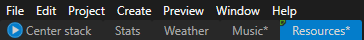 - In the project tab bar select the referenced project from which you want to use a prefab or resource.