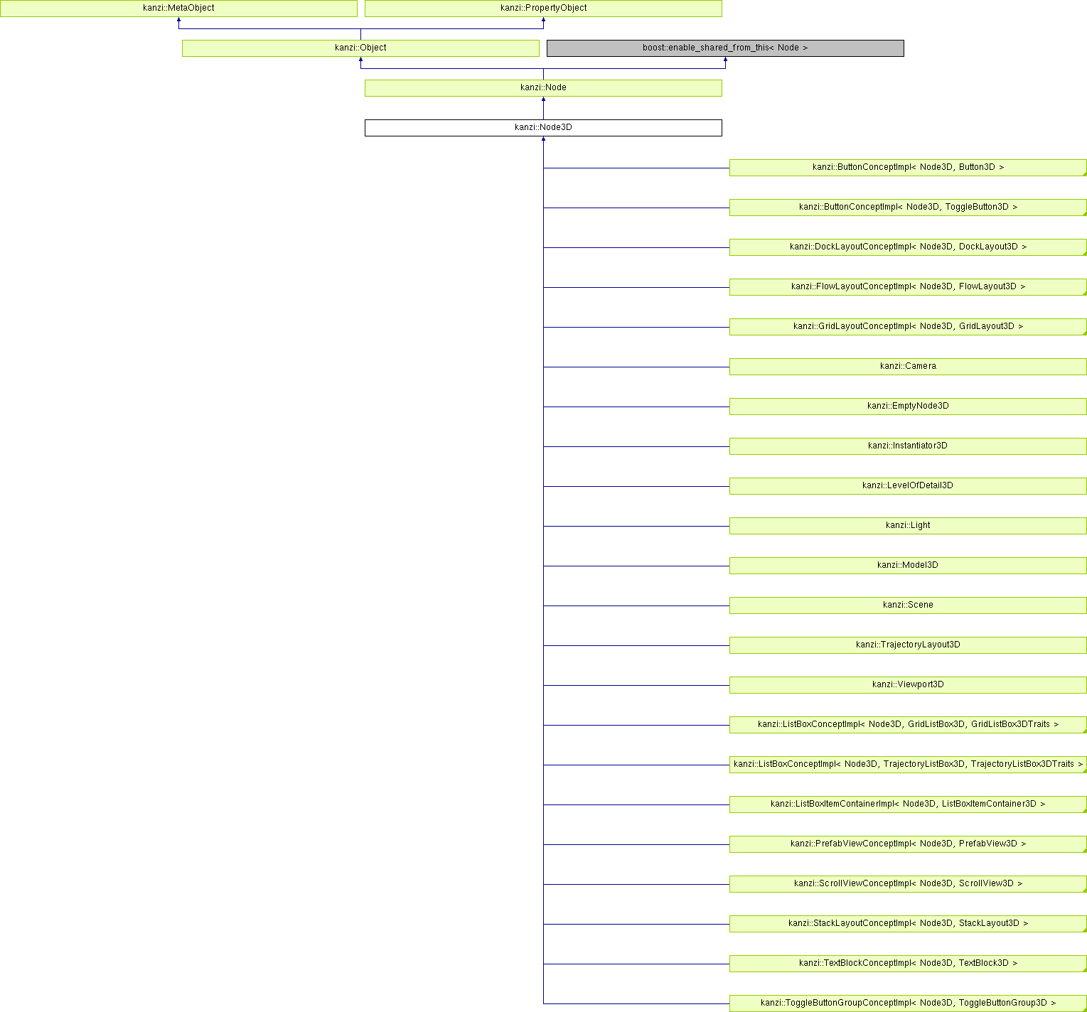kanzi::Node kanzi::Object kanzi::MetaObject kanzi::PropertyObject kanzi::ButtonConceptImpl< Node3D, Button3D > kanzi::ButtonConceptImpl< Node3D, ToggleButton3D > kanzi::DockLayoutConceptImpl< Node3D, DockLayout3D > kanzi::FlowLayoutConceptImpl< Node3D, FlowLayout3D > kanzi::GridLayoutConceptImpl< Node3D, GridLayout3D > kanzi::Camera kanzi::EmptyNode3D kanzi::Instantiator3D kanzi::LevelOfDetail3D kanzi::Light kanzi::Model3D kanzi::Scene kanzi::TrajectoryLayout3D kanzi::Viewport3D kanzi::ListBoxConceptImpl< Node3D, GridListBox3D, GridListBox3DTraits > kanzi::ListBoxConceptImpl< Node3D, TrajectoryListBox3D, TrajectoryListBox3DTraits > kanzi::ListBoxItemContainerImpl< Node3D, ListBoxItemContainer3D > kanzi::PrefabViewConceptImpl< Node3D, PrefabView3D > kanzi::ScrollViewConceptImpl< Node3D, ScrollView3D > kanzi::StackLayoutConceptImpl< Node3D, StackLayout3D > kanzi::TextBlockConceptImpl< Node3D, TextBlock3D > kanzi::ToggleButtonGroupConceptImpl< Node3D, ToggleButtonGroup3D >