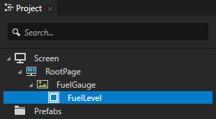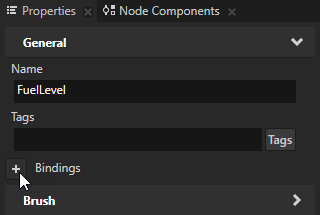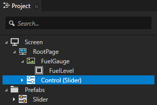 In this section you create a slider, which you use to simulate the fuel level. You bind the Layout Height property of the FuelLevel node to the value of the slider so that when you move the slider knob, you change the height of the fuel level indicator.