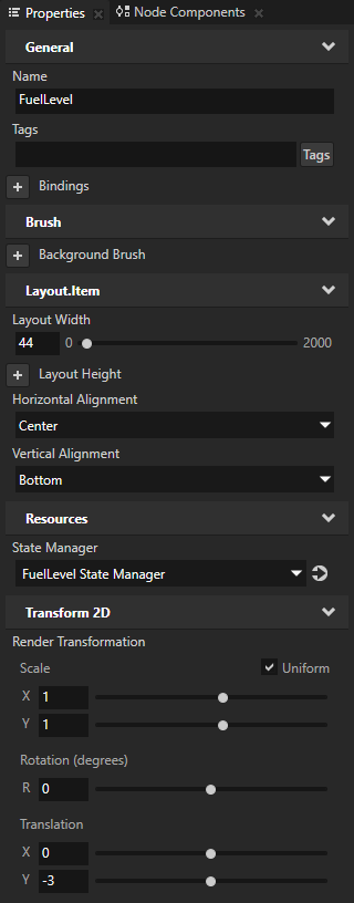 In the Preview when you drag the knob on the slider, the FuelLevel state changes based on the value of the Layout Height property of the FuelLevel node.