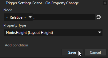 You set Kanzi to execute the On Property Change trigger when the value of the Layout Height property in the FuelLevel node changes.
