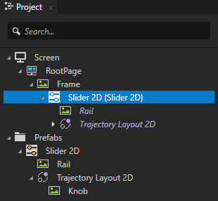 Inside the Trajectory Layout 2D create a node that you want to use as the visual representation of the slider knob. For example, create an Image node and name it Knob.