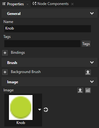 In the Project select the Knob node and in the Properties set the Image property to the Knob image.