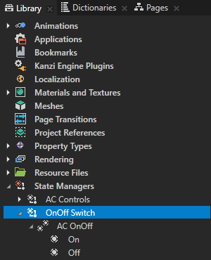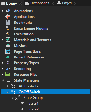 - In the Library > State Managers create a state manager, and name it OnOff Switch.