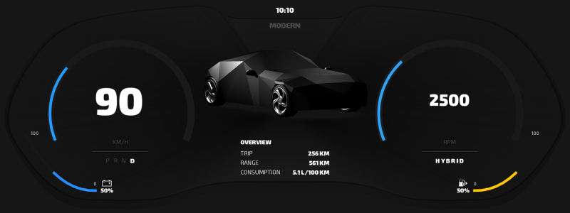 Use a single Kanzi Studio project for more than one variant of your product. To learn how to do this, you create a car cluster for these car variants: