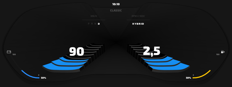 The Classic theme contains circular speed and RPM gauges with the values for both shown in the center of the gauge.