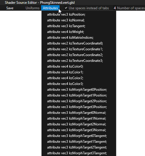 Vertex attributes always have one of these semantics and Kanzi automatically recognizes these names: