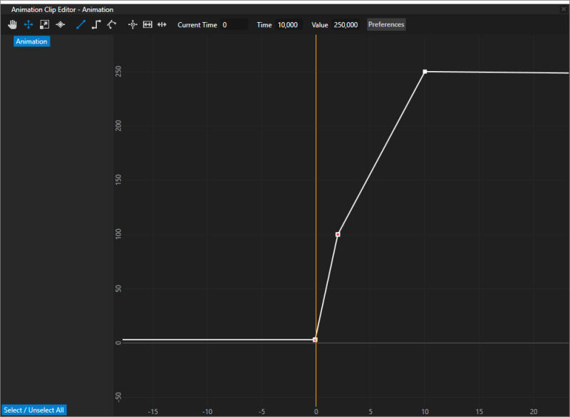For example, create an Animation Data item that contains three keyframe points so that you end up with two significantly different segments. For example, create keyframes at: