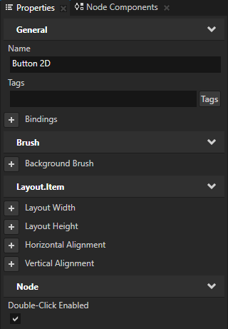 Use the Button nodes to create interactions through clicking, tapping, or pressing a key on the keyboard. Use Button 3D to create a 3D button and Button 2D to create a 2D button.