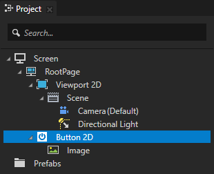 In the Projectpress Alt and right-click the node where you want to create a button and select either Button 3D, or Button 2D. Note that you can create a 3D node only inside 3D nodes, and 2D node only inside 2D nodes.
