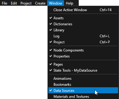 To work with data sources in your Kanzi Studio project, select > Data Sources.