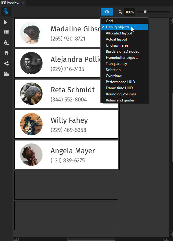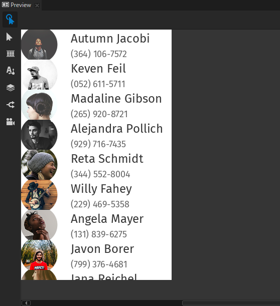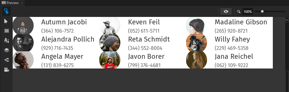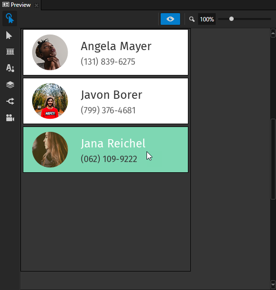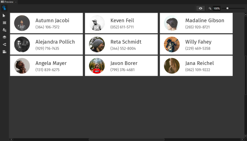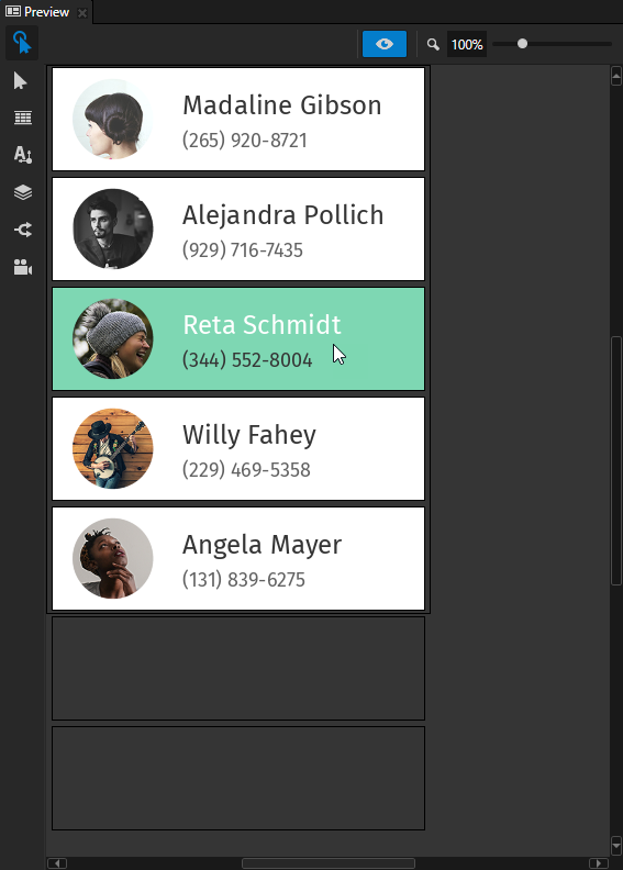 To browse the items in a Grid List Box node, in the Preview click and drag the items in the Grid List Box node.