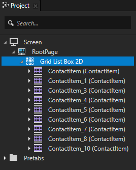 For example, to create a contact list, add several nodes which represent the contacts in the list. See Using the List Box Item Container prefabs.