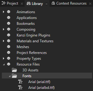 The default font in Kanzi is Fira Sans Regular. It is stored in <KanziInstallation>/Studio/Asset Library/Fonts. When you want to use your own font, import it to your Kanzi Studio project.