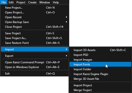 When you open the Import Fonts window, Kanzi Studio shows system fonts. To import fonts from a different location, click Browse and select the directory from which you want to import fonts.