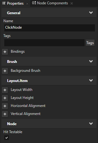 In the Project select the node you created in the previous step, in the Properties add the Hit Testable property, and set it to enabled. When you enable this property you enable the user to pick a node.