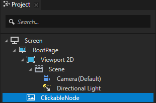 In the Project create a node for which you want to enable the click gesture. For example, create an Empty Node 2D node, name it ClickNode, and add content to the node.