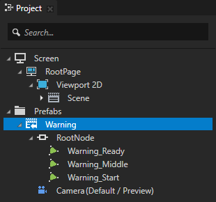In the Project > Prefabs copy the Model node which uses the Morph resource and paste it to the node where you want to add the morph. For example, in the Project > Prefabs copy the Warning_Start node and paste it to the Scene node.