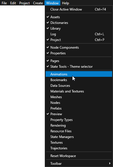 By default Library shows all the resources in a project. Kanzi Studio provides Library views to show only selected resources in your project. You can enable these views in the Window menu:
