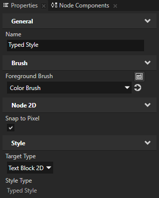 To enable the Snap to Pixel property for the Text Block 2D node you created, add the Snap to Pixel property to the Typed Style you created.