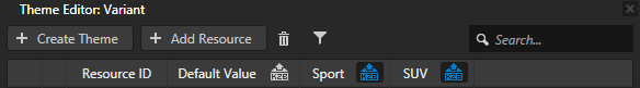 A Theme resource pack is a kzb file which contains only the resources for a selected Theme. Use this approach when the storage or memory on your target device is limited, but you want to change the application theme at runtime without having to load additional kzb files. For example, with this approach you can create from one Kanzi Studio project applications for two car variants (Sport and SUV), where each has two Themes (Blue and Red) between which you can switch without loading additional kzb files.