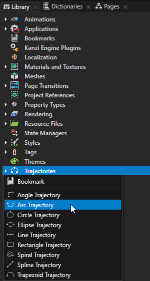 - In the Library press Alt and right-click Trajectories and select Arc Trajectory.