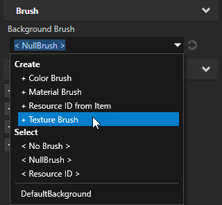 - In the Project select the Empty Node 2D node, in the Properties add the Background Brush property, and in the dropdown menu select + Texture Brush.