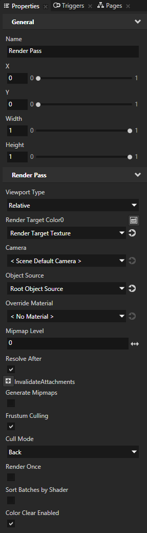 - In the Project select the Scene node to which you want to apply multisampling, and in the Properties set the Render Pass property to the Group Render Pass or Legacy Render Pass (deprecated) you use to render the Render Target Texture you created in the first step.
