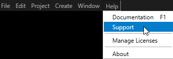 - In the Kanzi Studio main menu select > Support.
