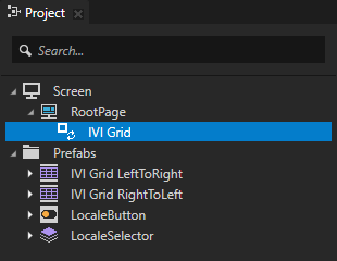 - In the Project > Prefabs select the IVI Grid RightToLeft prefab and in the Properties set the Background Brush to Background RightToLeft.