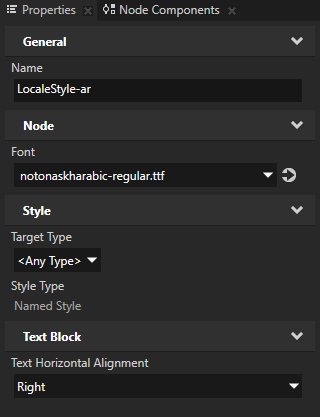 - Repeat the previous step for the LocaleStyle-he but set the Font property to notosanshebrew-regular.ttf.
