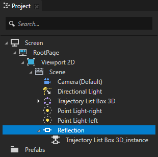 This project contains a Trajectory List Box 3D node with several 3D models and lights. In this tutorial you create the reflection of these nodes.
