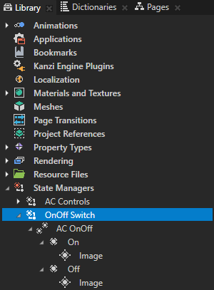 - In the Library > State Managers create a state manager, and name it OnOff Switch.