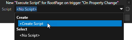 - In the On Property Change trigger click the dropdown menu and select the Execute Script action.