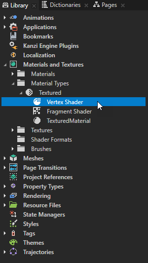 In the Library > Materials and Textures > Material Types select the material type and double-click the Vertex Shader. The Shader Source Editor window opens.