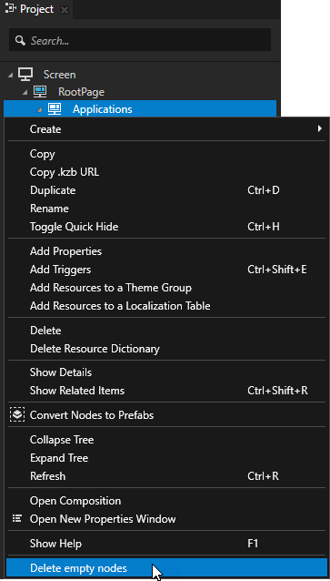 To delete Empty Node nodes without child nodes using a Kanzi Studio plugin: