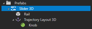 // Use the Trajectory Layout 3D node to define the rail along which the knob of the slider moves.