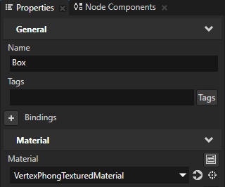 For example, in the Project create a Box node and in the Properties set Material to VertexPhongTexturedMaterial.
