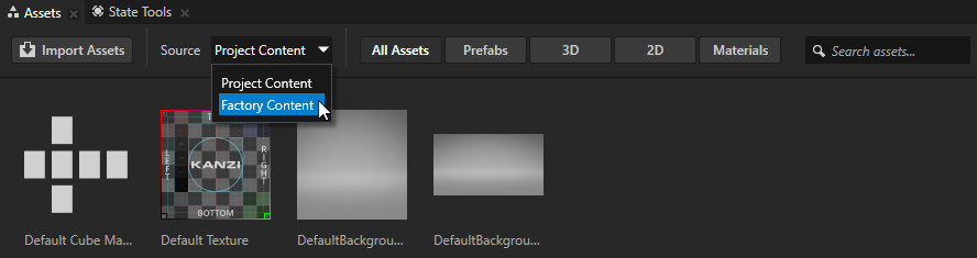 To learn more about the Kanzi Factory Content, see Factory Content assets.
