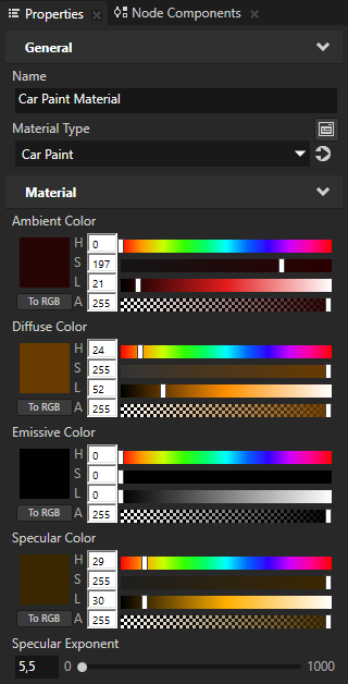 2. In the Library > Materials and Textures > Materials select the Car Paint Material and in the Properties set: