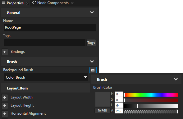 2. Click next to the Background Brush property and set the Brush Color Lightness (L) property field to 64.
