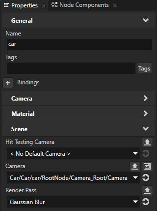 - In the Project select the RootPage > Car > car node and in the Properties set the Render Pass property to Gaussian Blur.