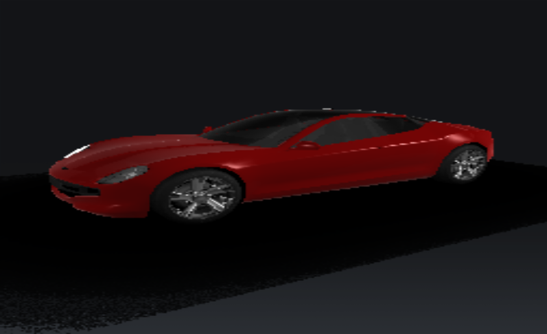 Kanzi renders the car in poor quality because the size of the Render Target Texture texture is only 256 by 256 pixels.