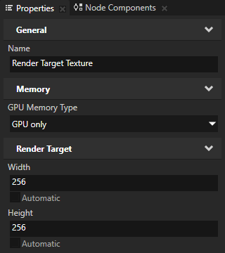 - In the Library > Materials and Textures > Textures select the Render Target Texture texture and in the Properties set: