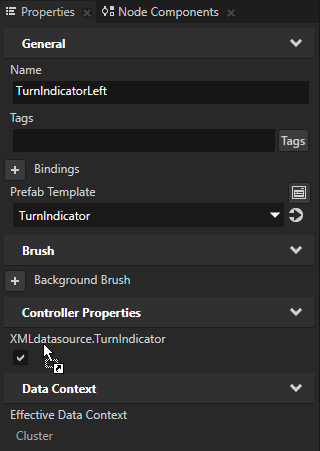 - Repeat the previous step for the Gauges > TurnIndicatorRight node. Use the Cluster > turnindicator > right data object.