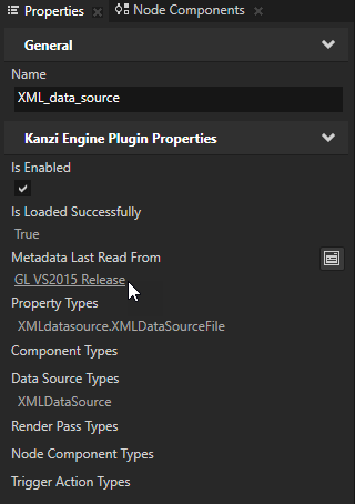 After you update the plugin metadata and select the plugin in the Library, in the Properties the Metadata Last Read From property shows which plugin .dll file Kanzi Studio loaded and read metadata from.