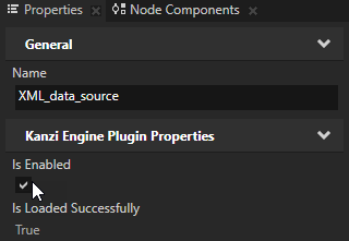 - In Kanzi Studio in the Library select the Kanzi Engine Plugins > XML_data_source plugin and in the Properties make sure that the Is Enabled property is enabled.