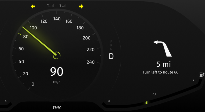 - Open Application/bin/Cluster.xml file in a text editor and change the values in the speed, fuel, battery, or distance XML elements. When you save the file the Kanzi Engine plugin where you defined the data source and which you created in the previous step of this tutorial, updates the data objects and shows the updated values in the Kanzi Studio Preview and the Data Sources window.