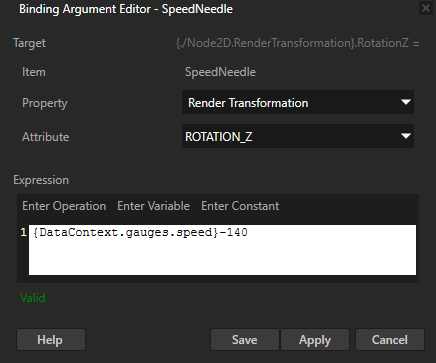 next to the Bindings property to add the Bindings property, and in the Binding Argument Editor set: