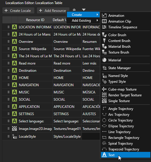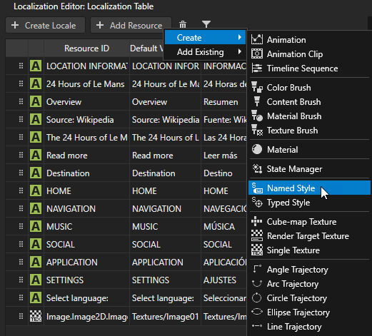 - In the Localization Editor click + Add Resource, select Create > Named Style and name it LocaleStyle.